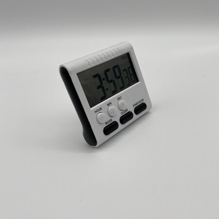 Ons eigen type digitale timer is speciaal geselecteerd op gebruik vriendelijkheid en op zijn eigenschappen. De knoppen zijn groot en het scherm is duidelijk afleesbaar. De kookwekker heeft een magneet op de achterzijde en kan daarmee op bijvoorbeeld je koelkast worden geplakt of ieder ander metalen oppervlakte. Ook heeft de timer een handige standaard die de klok zo flexibel maakt dat je die altijd in de buurt kan zetten. De digitale kookwekker geeft een luid signaal die je niet kan missen.