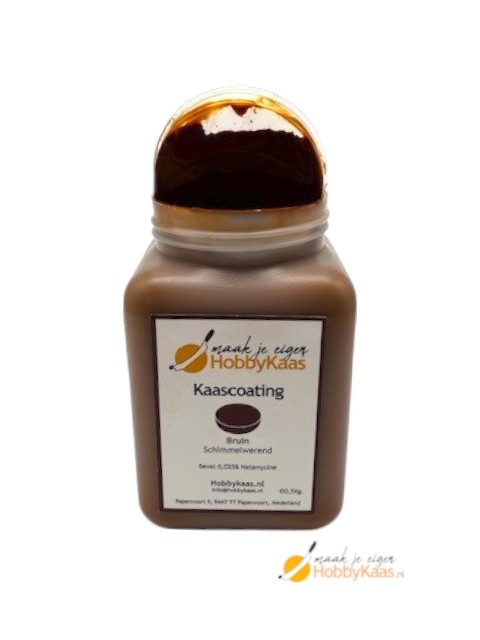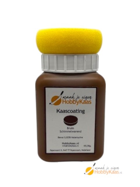Onze kaascoating wordt uitsluitend in Nederland geproduceerd. Er zijn hoofdzakelijk 2 soorten coating verkrijgbaar. Onze coating is geproduceerd op basis van polyvinylacetaat en is aan de strengste kwaliteitseisen onderworpen. De schimmelwerende natamycine is een natuurlijke micro organisme werende stof die uit een ander micro organisme is gewonnen die gelijkenis vertoont met schimmels. Een alternatief is op basis van calcium- natriumsorbaat en is in Nederland streng verboden.