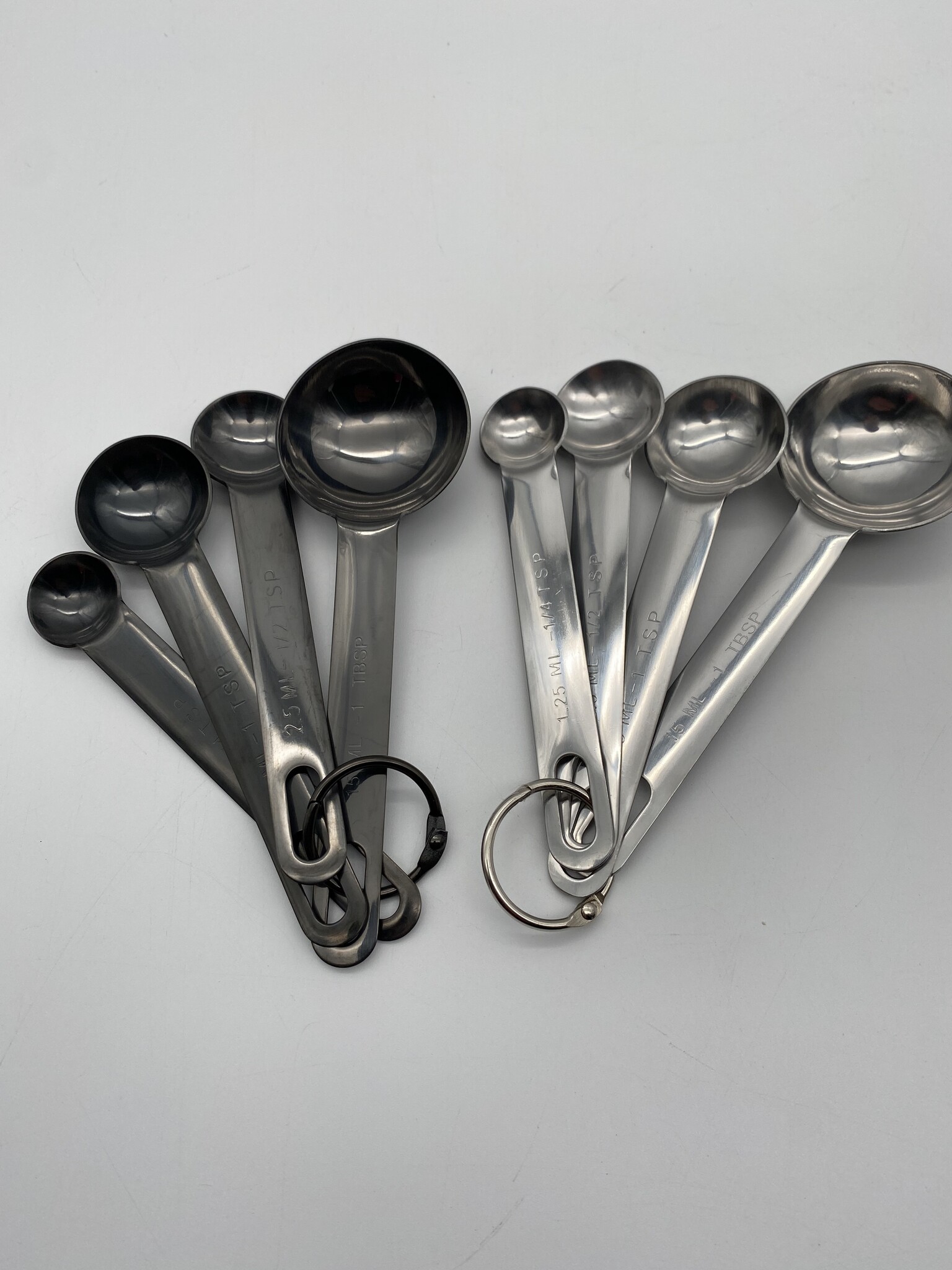 Gebruik deze zilveren maatlepels om nauwkeurig en met stijl ingrediënten te doseren. Of je nu een delicaat recept volgt of een culinair meesterwerk creëert, deze maatlepels zijn jouw betrouwbare metgezel.
