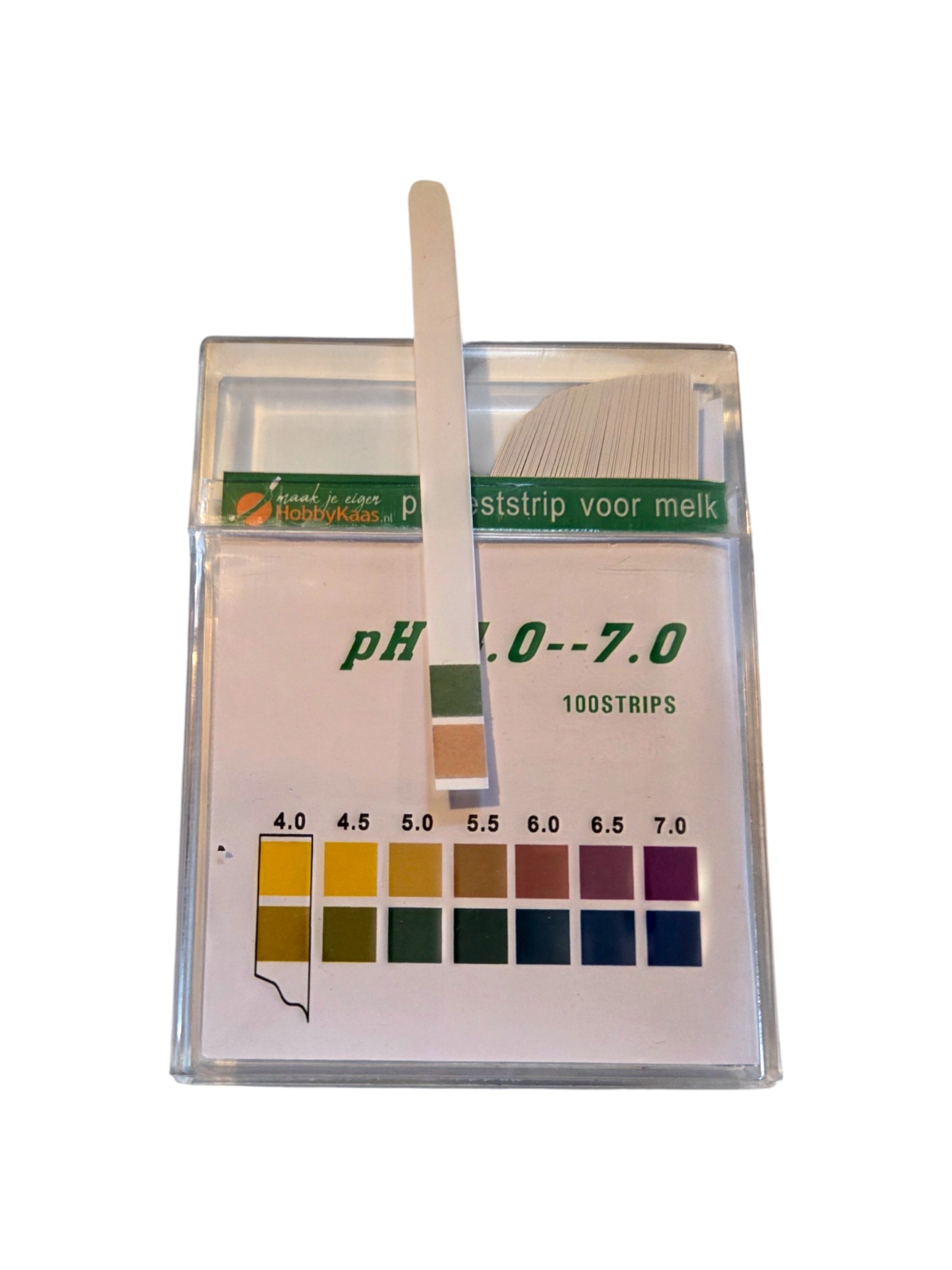 Het doosje bevat 100 pH-teststrips, elk voorzien van een pH-schaal aan de voorkant. Door simpelweg een teststrip in de melk te dopen, kun je snel en gemakkelijk de pH-waarde meten. Dit zorgt voor een efficiënt en betrouwbaar proces bij het maken van kaas.