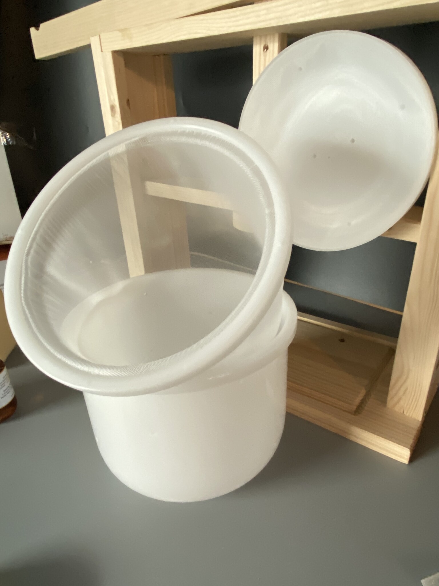 - Haak: Om gewichten aan te hangen voor het persen van je kaas.