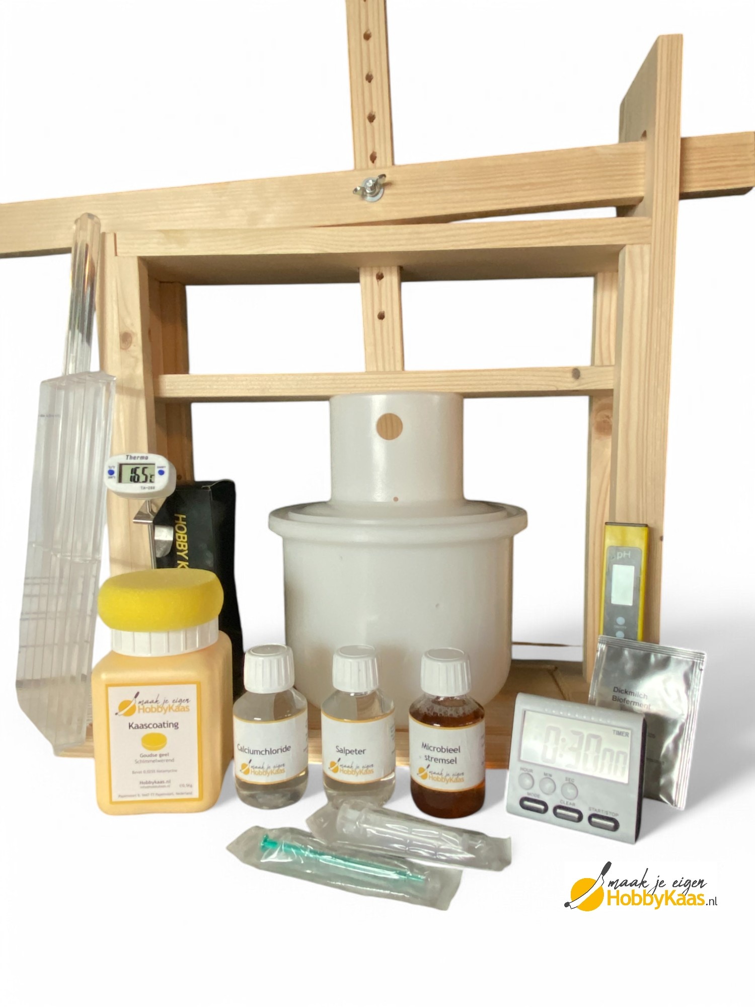 Deze set bevat alles wat je nodig hebt om je eigen perfecte kazen te maken, inclusief de grote Gouda vorm van Kadova en een scala aan handige tools en ingrediënten.